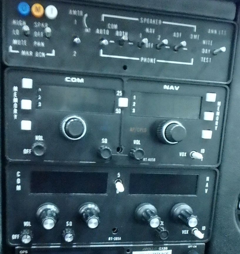 航空無線のことをATC(Air Traffic Control)と言ったりもします。ちなみに下の写真が訓練でお借りしている機体の無線機です。「COM」とあるのが無線周波数を合わせる窓です。