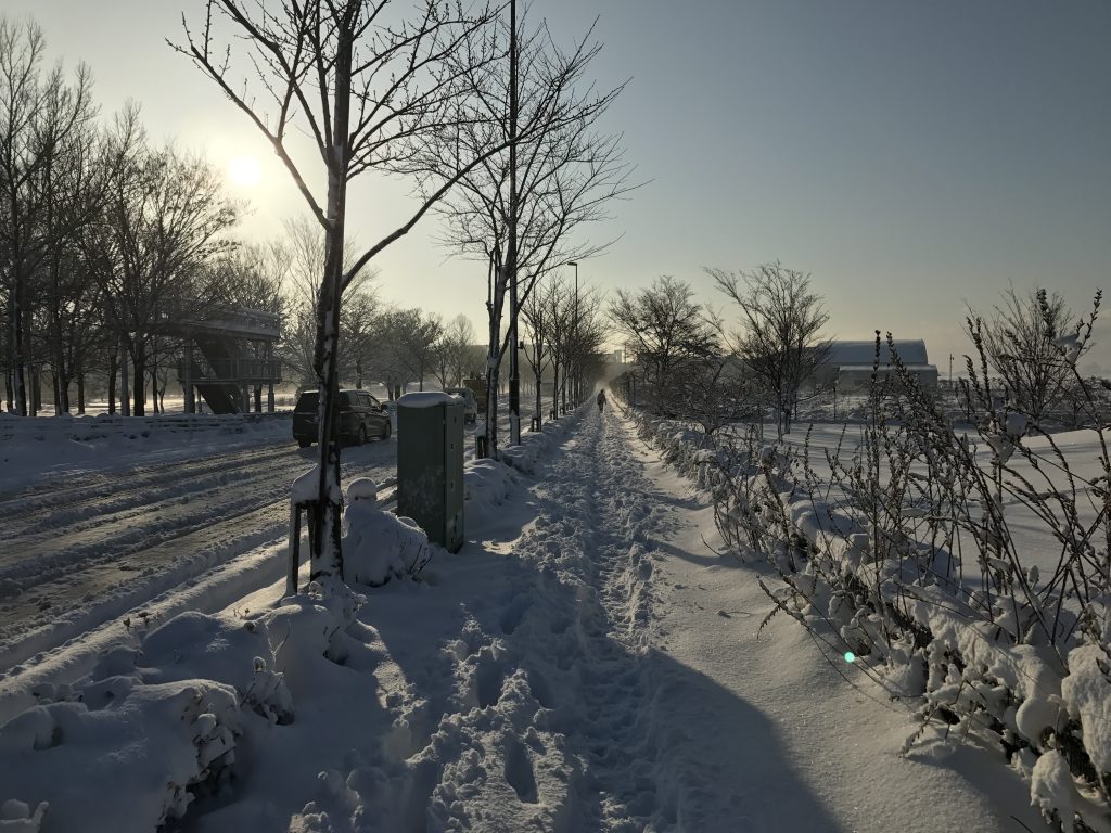 通勤している人がシャベルを持って除雪しながら進んでいる光景は、生まれて初めて見ました。