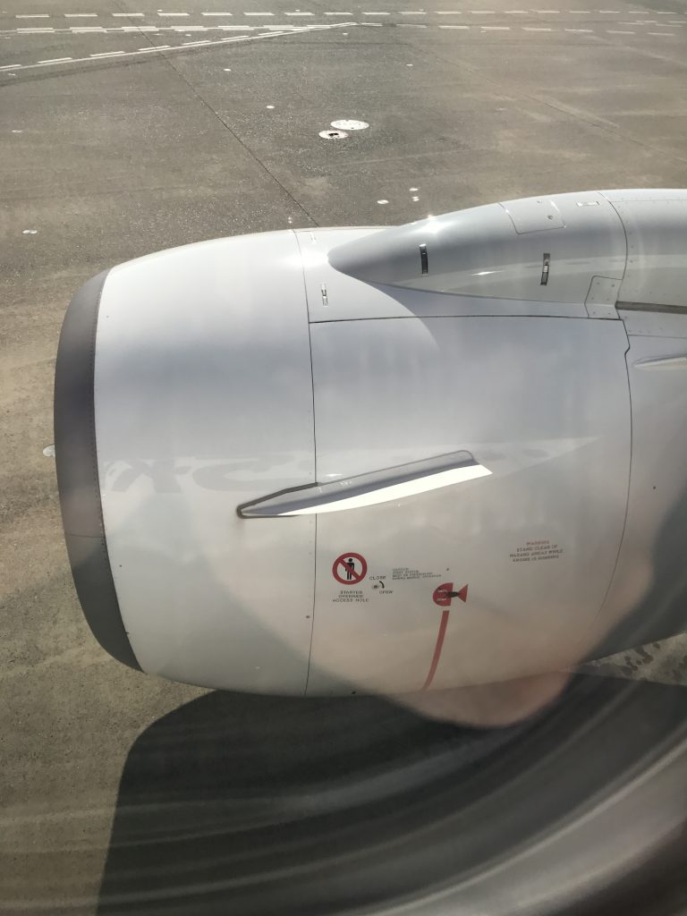 こちらが乗っているB737の胴体とほぼ同じ直径を持つエンジンを持つB777です。その出力たるや恐ろしやです。