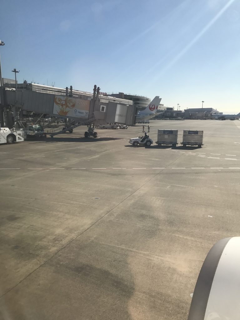お隣のボーディングブリッジには東京オリンピック2020の広告が見えます。