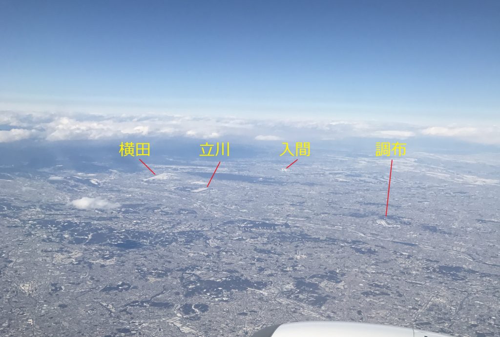 東京や埼玉にある調布飛行場、立川飛行場、横田基地、入間基地が前の日に降っていた雪が飛行場敷地内に残っているので