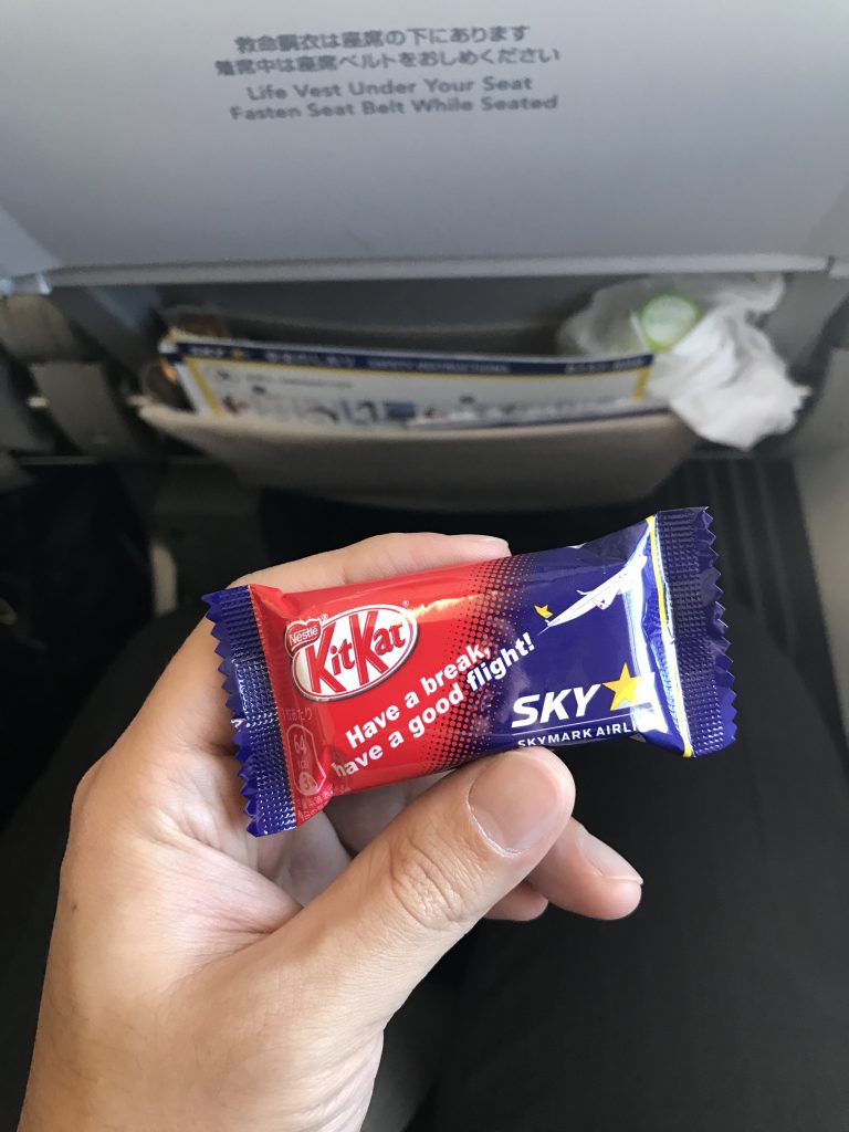 と、その前に機内サービスの飲み物と。キットカットが配られてきました。受験シーズンのこの時期ならではですね~。