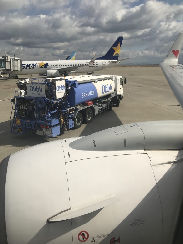 経由地のため、横を見るとすぐにリフュエラー(給油車)が横付けされていました。