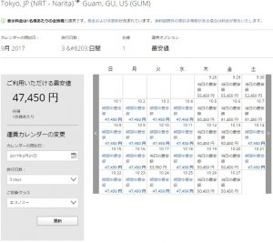 20170330時点ユナイテッドNRT-GUM料金(10月)