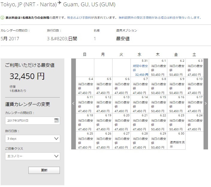 20170330時点ユナイテッドNRT-GUM料金(6月)